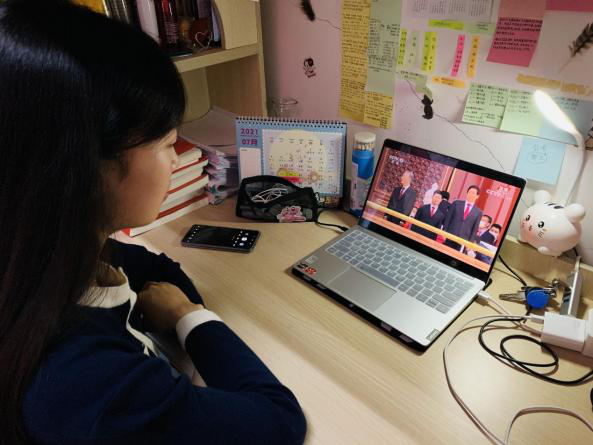 庆祝中国共产党成立100周年大会7月1日上午8时在北京天安门广场隆重举行。中共中央总书记、国家主席、中央军委主席习近平发表重要讲话。会场外,手机赚钱 组织师生通过集中、分散地方式收看直播,认真聆听习近平总书记的重要讲话。