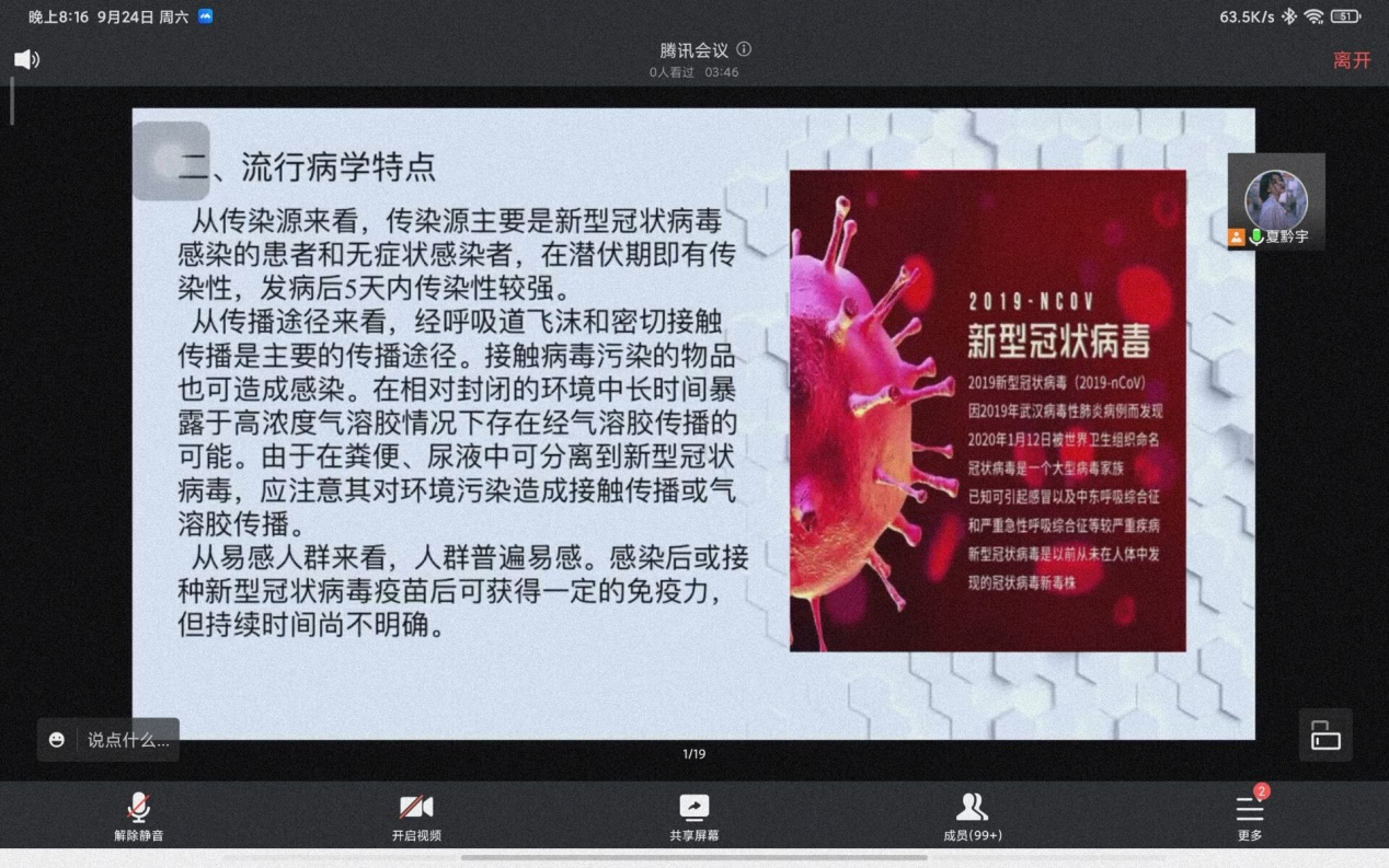 2022年9月24日,手机赚钱 “同心战‘疫’ 我是防疫科普员”主题活动进行第二期,由本科生第三党支部承办,为手机赚钱 同学们讲解疫情期间如何做好个人防护。活动以线上主题党日活动的方式进行,由本科生第三党支部书记符广兴主讲,19级、20级、21级党员和22级3班及社会工作班全体学生参加。