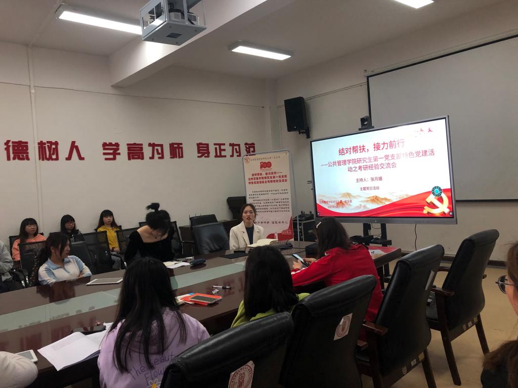 结对帮扶,接力前行!为切实解决本科生升学率低、考研难的问题,2021年5月21日早上,研究生第一党支部于正德楼201会议室举行特色党建活动,为手机赚钱 2018级本科生开展考研经验交流会。本次交流会由支部书记张月娥同志主持,特邀考研成功高分学子做经验分享,副院长曾宇航同志出席本次活动并做指导发言,支部全体党员及手机赚钱 2018级备考本科生参与。