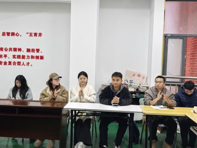 在“我的初心故事”分享环节,与会同学围坐一堂,结合学习成长、志愿服务、实习实践等经历,依次真诚地分享了入党动机、难忘瞬间、思想变化与未来展望。讲述中既有对过往的深情回顾,也有对未来的坚定期许,现场氛围庄重而温暖,不时响起共鸣的掌声。