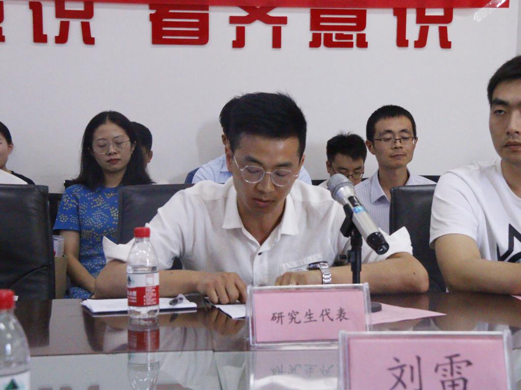 赵丽向新学员们能够通过激烈竞争进入研究生阶段学习表示祝贺。赵丽介绍了我校研究生教育的发展历程,为新学员们介绍了学校在研究生培养各个阶段中的相关规定,明晰了主要的任务和要求,并用朱熹在《大学》中的“知止而后有定;定而后能静;静而后能安;安而后能虑;虑而后能得。”与全体学员共勉,希望大家能够心静、心安、心定并学有所成。