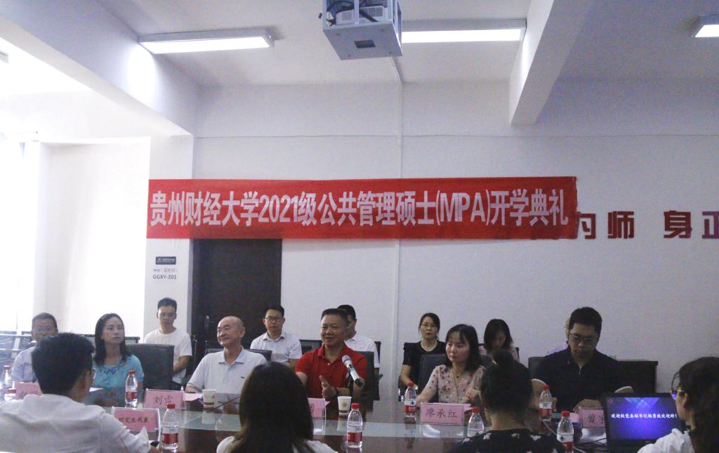 丹枫迎秋,金风送爽。2021年9月5日,贵州财经大学首届公共管理硕士(MPA)开学典礼在正德楼201会议室隆重举行。校党委书记刘雷,校党委副书记杨勇,研究生院副院长赵丽,手机赚钱 党委书记廖承红,校学术委员会委员王飞跃教授,手机赚钱 副院长曾宇航,手机赚钱 党委副书记刘晓娟以及MPA教育中心负责人、导师代表和2021级公共管理硕士(MPA)新学员出席了开学典礼。开学典礼由手机赚钱 党委书记廖承红主持。