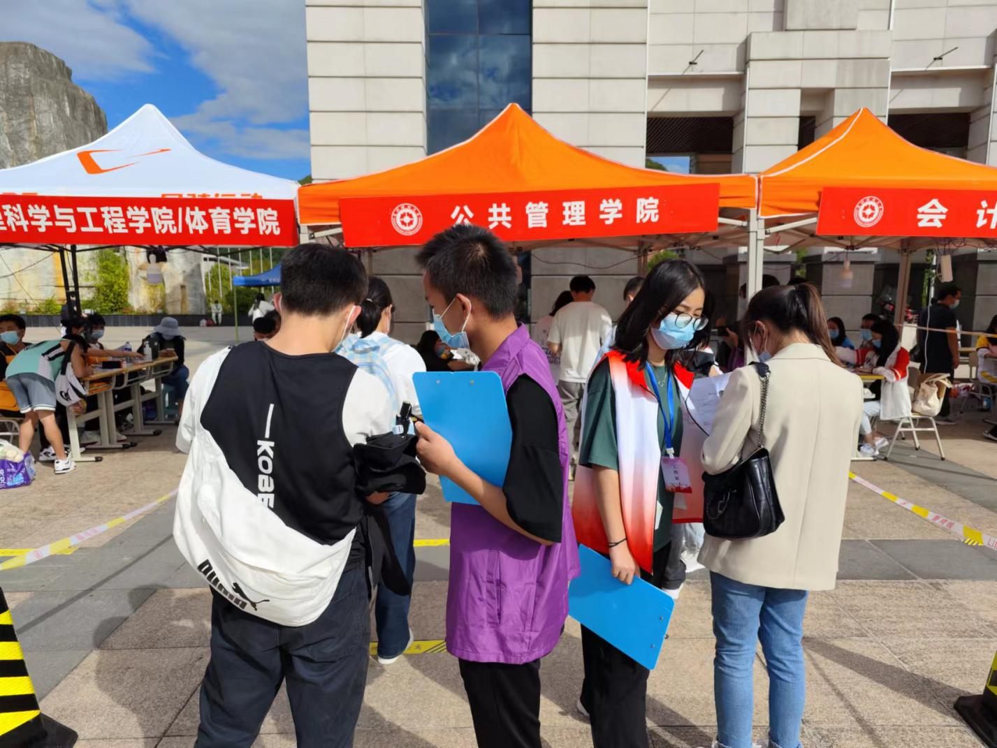 为严格把好在校学生进出校门关卡,确保国庆假期学生合理、有序流动,维持校园内难能可贵的抗疫成果,10月1日-3日,在学校的统一部署下,手机赚钱 精心谋划、严密组织,发动师生志愿者积极投身于抗疫志愿服务一线,为广大公管学子做好国庆离返校志愿服务工作。