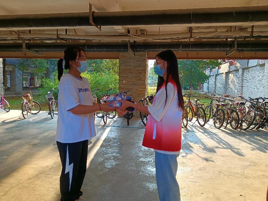 在严格遵守学校疫情防控要求的前提下,志愿者们分批次、有序的去到宿舍收集捐赠衣物,并到指定的寝室楼下将衣物送到有需要的同学手中。疫情无情人有情,公管学子们众志成城,用特殊的方式“同心抗疫”。一次次温暖的交接、一句句真诚的道谢,诠释了公管学子人人友爱、共克时艰的“公管温度”。公管学子用互帮互助、热情友善的可贵品质和暖心行动展现了疫情下的“贵财关怀”。