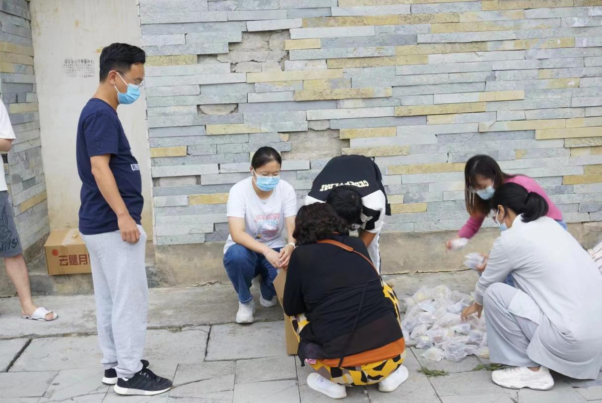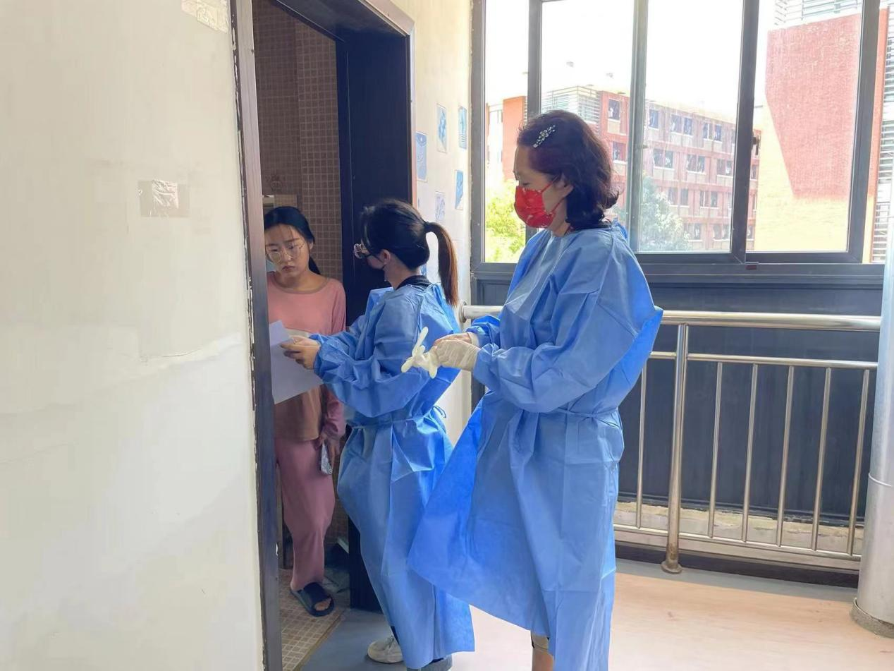 党员志愿者们到学生寝室一间间地分发抗原试剂