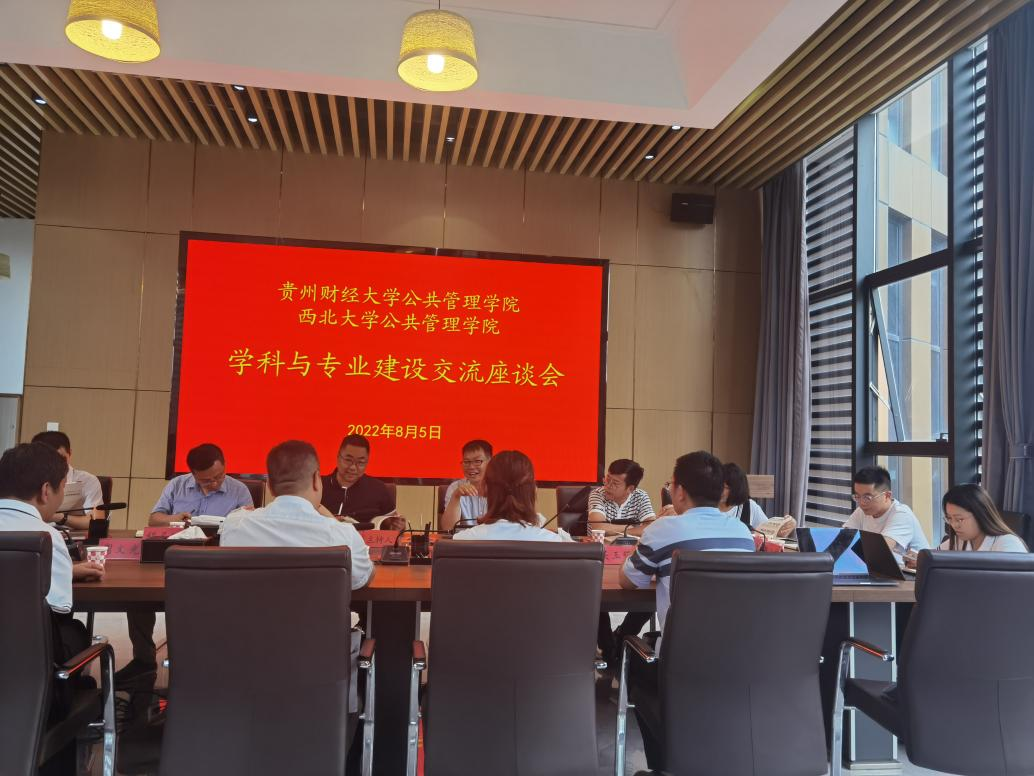 2022年8月5日下午,手机赚钱 与西北大学手机赚钱 在贵州智慧招展集团召开了学科与专业建设交流座谈会。西北大学手机赚钱 院长雷晓康、行政管理系数字政府研究团队负责人付熙雯、社会保障学系主任吴玉峰、公共信息资源系主任王铮、公共政策与管理系主任周文光以及社会保障学专业3名硕士研究生,手机赚钱 院长曾宇航、《贵州财经大学学报》编辑部副主任与行政管理方向带头人张领、行政管理系主任田恒、行政管理系副教授樊梅、学科和科研秘书石飞,贵阳国家高新区大数据发展办公室副主任程灵琨,贵州智慧招展集团问道智库公司执行董事陈东贤,贵州乐诚技术有限公司总经理助理与政企事务总监肖曾旅,参加了此次交流座谈会,会议由曾宇航主持。