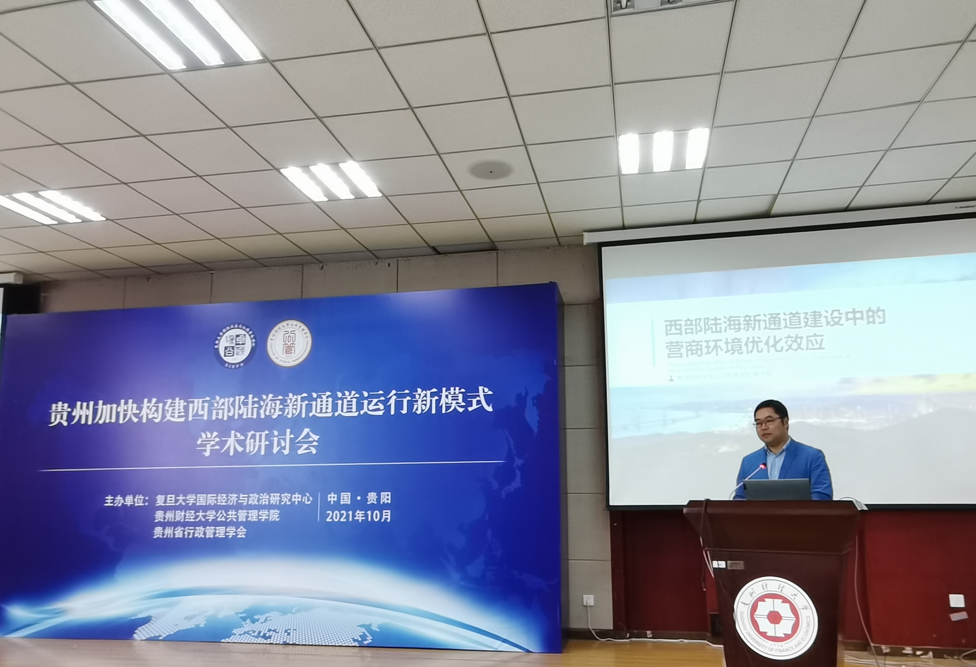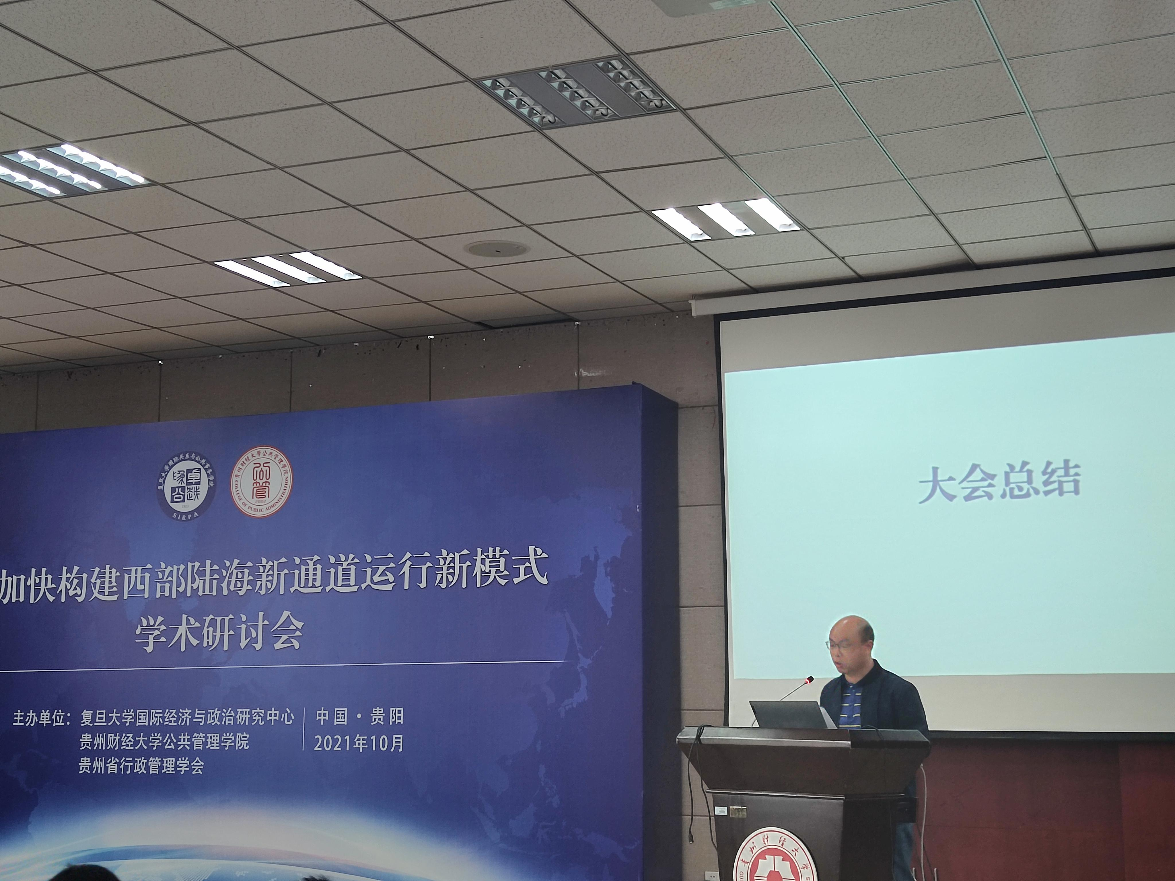 10月24日,“贵州加快构建西部陆海新通道运行新模式”学术研讨会在贵州财经大学正德楼114报告厅举行。会议由复旦大学国际经济与政治研究中心、手机赚钱 、贵州省行政管理学会联合举办。本次会议有来自复旦大学、贵州大学、贵州师范大学、贵州财经大学、贵州省发改委等高校和政府部门的专家学者和师生通过线上线下形式参加了此次会议。研讨会围绕陆海新通道与区域治理、陆海新通道与物流发展、陆海新通道与贸易发展、陆海新通道与产业发展等四个专题开展深入研讨交流。