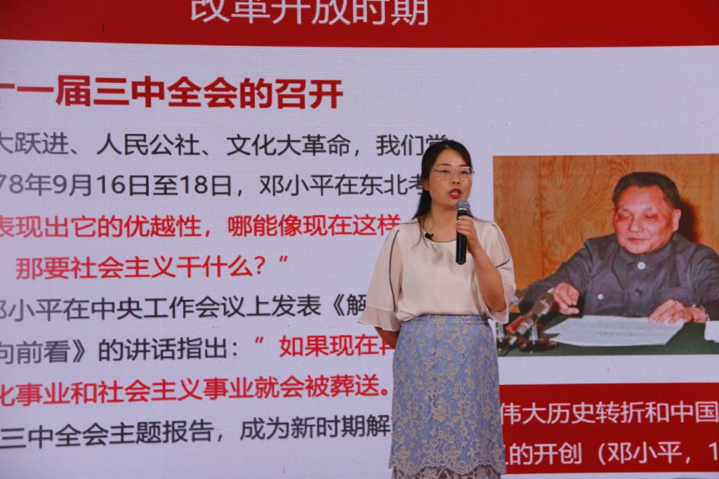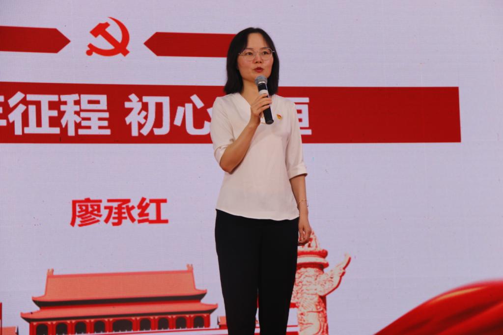 活动伊始,党委书记廖承红进行开篇致辞,表示以讲述、情景剧、歌唱和诗朗诵等丰富多彩的形式,就是希望能带领广大师生一起重温中国共产党百年光辉历程并从中汲取奋斗力量。活动共分为四章,分别是由曾宇航讲述了“新民主主义时期”,刘晓娟讲述了“社会主义革命与建设时期”,金莲讲述了“改革开放时期”,范平花讲述了“社会主义现代化建设时期”。出席嘉宾通过结合不同时期的时代特征深情的讲述着党的百年历程,从艰难建党到现在党的宏伟大观,其中历经千辛万苦,度过了一个个生死关头。