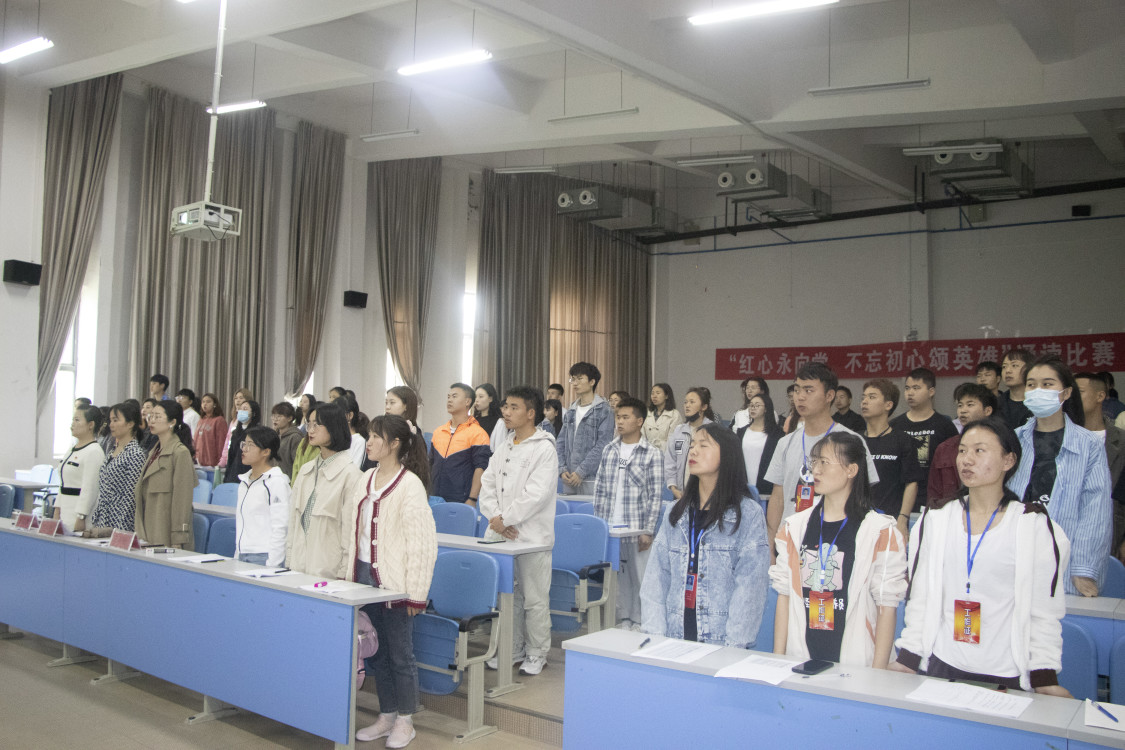 活动开始前,廖承红发表讲话,围绕比赛主题“红心永向党,不忘初心颂英雄”讲述了举办本次活动的意义,强调,身为党员和正在积极向党组织靠拢的同学们要通过学习先进楷模事迹,对标争先,不断向优秀模范靠齐靠拢,严格要求自己,不断提升,用良好风貌和实际行动迎接建党百年。