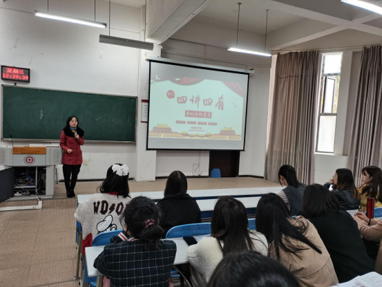 10月28日,手机赚钱 秋季党校第二讲在进学楼2-1教室进行。手机赚钱 党委书记廖承红为68名入党积极分子讲授“四讲四有 争做合格党员”主题课程。