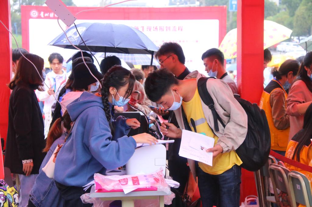 上午8点,新生陆续到校,现场迎新志愿者及学生会工作人员分工合作,从核对证件到领取宿舍钥匙及军训服一一引导,有条不紊地展开新生报到登记工作。手机赚钱 院领导亦关切地与新生交流,并与同来的学生家长热情攀谈,针对新生在报到过程中遇到的问题耐心讲解。大雨的洗刷对壮大的迎新队伍没有丝毫影响,他们依旧以热情的面孔对待每个新生的到来,迎新现场温情满满。