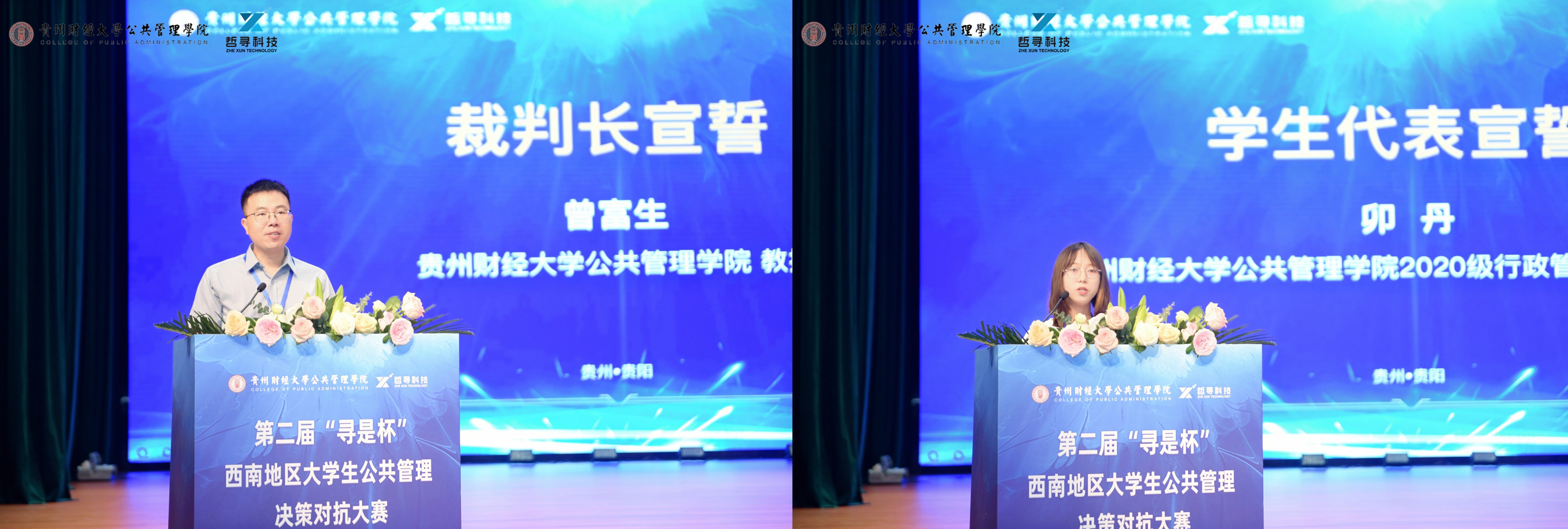 裁判长手机赚钱 教授曾富生、学生代表2020级行政管理专业本科生卯丹,分别代表裁判员和参赛学生宣誓。