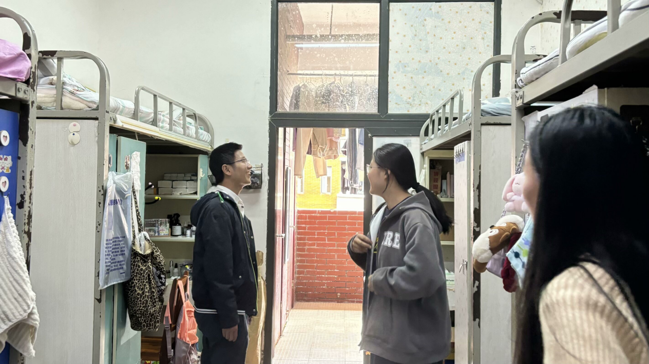 宿舍内务整理大赛前夕,劳动实践课的指导教师们来到寝室,亲切入微地做内务指导。被子如何叠好,物品如何摆放、分类、收纳……学生在寝室里的方方面面,老师们都不厌其烦地进行指导。