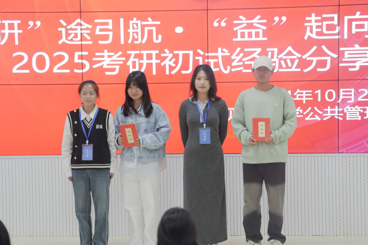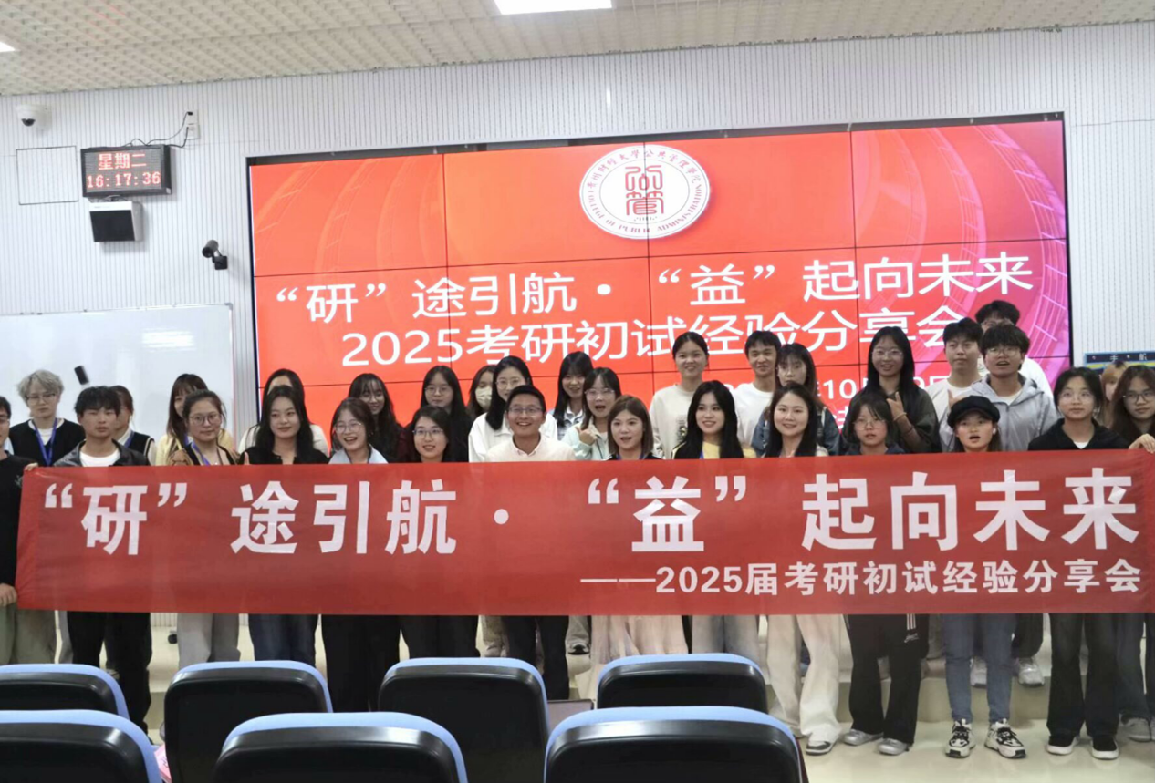 本网讯:( 韩宏宇 刘艺 报道|摄影 陆国欣)为深入宣传贯彻习近平新时代中国特色社会主义思想,扎实推进“一站式”学生社区综合管理模式建设工作,充分发挥先进学生榜样在社区文化浸润中的积极育人功能,激发公管学子的考研热情,明确考研目标,坚定考研信心,10月29日,手机赚钱 研究生会在进学楼203报告厅开展“‘研’途引航·‘益’起向未来”助力考研系列活动之2025届初试经验交流分享会。