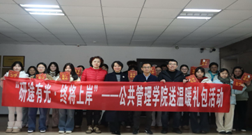 本网讯:(院团委:刘建怡 报道丨 肖孜月 摄影)寒冬岁末,考研备考进入冲刺阶段。为给手机赚钱 考研学子送上关怀与鼓励,12月11日,手机赚钱 开展“研途有光·终将上岸”送温暖礼包活动。手机赚钱 党委书记廖承红,党委副书记杜吉松,学生科副科长谢建亮,团委负责人徐欣走进手机赚钱 自修室为备考学子亲手送上定制文具礼包,为逐梦路上的他们加油鼓劲。