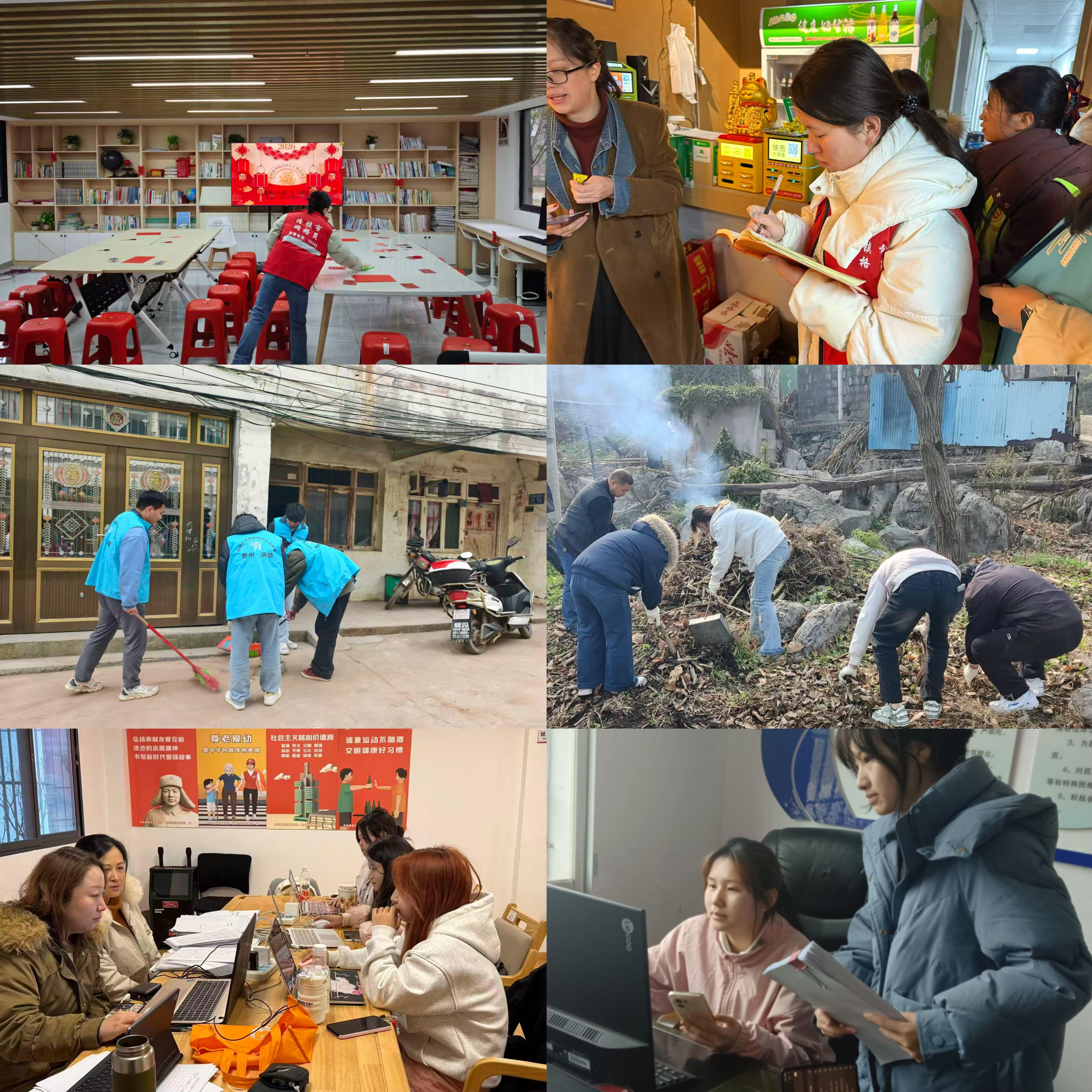 实习从基础的社区工作起步。在青龙山街道、红枫湖镇大冲村文明实践站等点位的同学们不仅协助整理信息台账,还尝试运用专业的社会调查方法对数据进行初步分析。在暗流镇社区之家、麦格乡观油村、麦格村儿童之家的同学们参与人居环境整治时,特别注重与村民的沟通交流,将简单的清扫工作转化为促进社区关系建设的实践。在青龙山街道、滨湖街道、巢风街道与红枫湖镇大冲村文明实践站的同学们走街串巷开展防诈骗与消防安全宣传,走访商铺、慰问老人。青龙山街道实习点的同学们还与广大上城党群服务中心合作举办了“迎春纳福”游园会主题活动,取得了良好的反响,获得社区居民与工作人员的认可。在这些看似琐碎的日常事务中,同学们逐步褪去课堂中的理论光环,学会以更贴近实际的视角理解居民需求。无论是协助梳理民生档案,还是为独居老人排查用电隐患;无论是引导商户规范经营,还是向村民普及反诈知识,每一次互动都让大家更加明确,只有扎实做好每一件具体事务,才能真正触摸基层治理的脉搏。