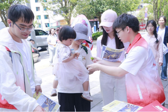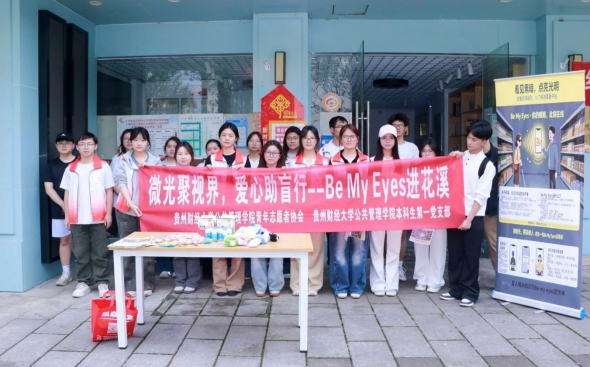 本网讯:(院团委、本一支部:宋阳玲报道|陈忠艺摄影)为弘扬志愿服务精神,传递社会关爱,提升大众对视障群体的关注与包容,助力“Be My Eyes”公益助盲平台普及,4月18日中午,手机赚钱 青年志愿者协会携手本科生第一党支部,在花溪十字街顺利开展“微光聚视界,爱心助盲行”线下公益宣传活动,以实际行动为视障群体搭建爱心桥梁。
