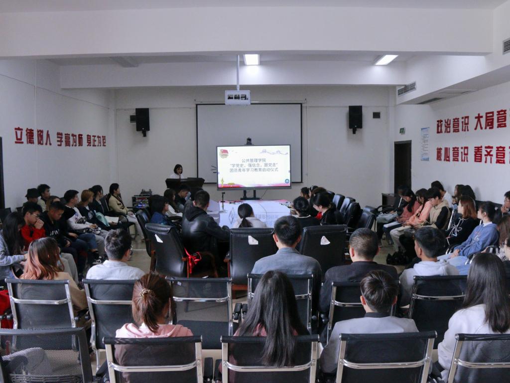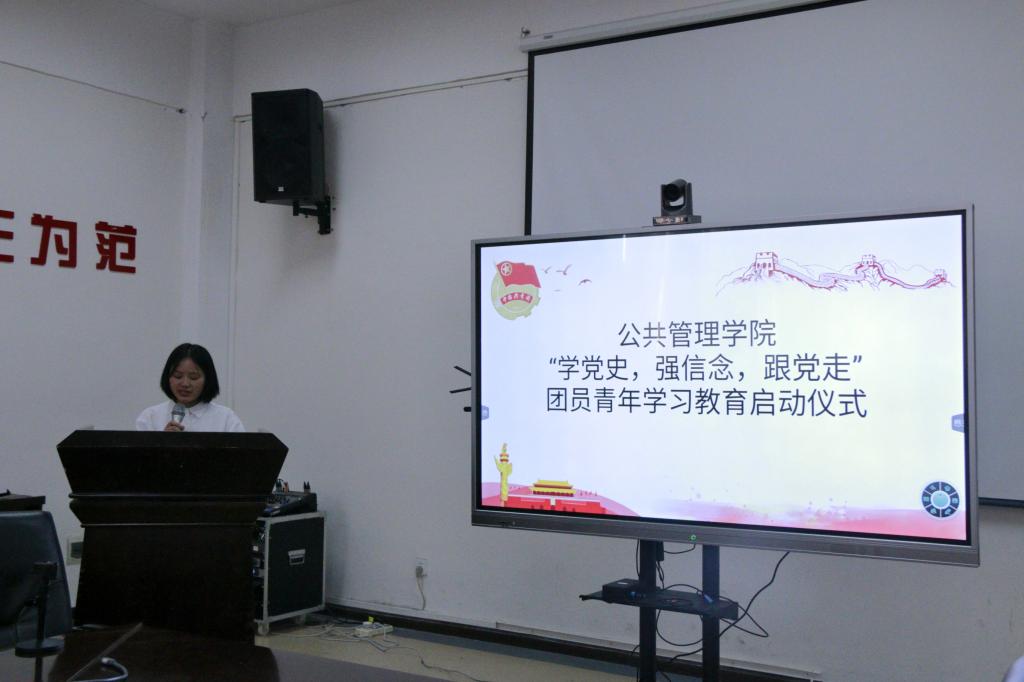 随后团员代表20级公共管理类三班蔡小兰同学发言,号召团员青年主动参与到校院两级的党史学习教育中,要紧紧围绕学史明理、学史增信、学史崇德、学史力行,紧密结合个人学习和工作实际,通过理论学习、组织生活和实践锻炼等形式,主动了解党的光辉历史、感悟党的初心使命、领会党的创新理论、体认党的精神谱系、传承党的红色基因,更加自觉地以习近平新时代中国特色社会主义思想武装头脑,进一步增强“四个意识”、坚定“四个自信”、做到“两个维护”。