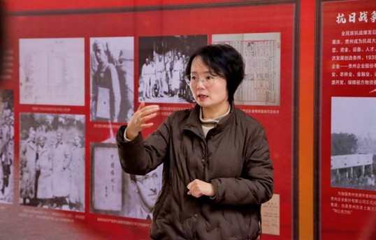 本次思政课打破“教师讲、学生听”的传统模式,将课堂搬到档案史料展一线。展览现场,一幅幅泛黄的老照片、一份份珍贵的文献档案,系统呈现了中国人民抗日战争的壮阔历程。廖承红以“抗日战争中的贵州”为核心主线,结合展板背后的故事娓娓道来:从“滇黔公路”作为抗战运输生命线的战略意义,到贵州各族人民踊跃参军、支援前线的热血壮举;从西南联大迁黔办学、保存教育火种的坚韧坚守,到贵州军民在防空袭、保生产中的顽强抗争……她时而驻足展板前细致解读,时而与学生互动交流,将宏大的历史叙事转化为可感可知的鲜活案例,让同学们深刻体会到贵州在全国抗战大局中所扮演的重要角色和作出的独特贡献。