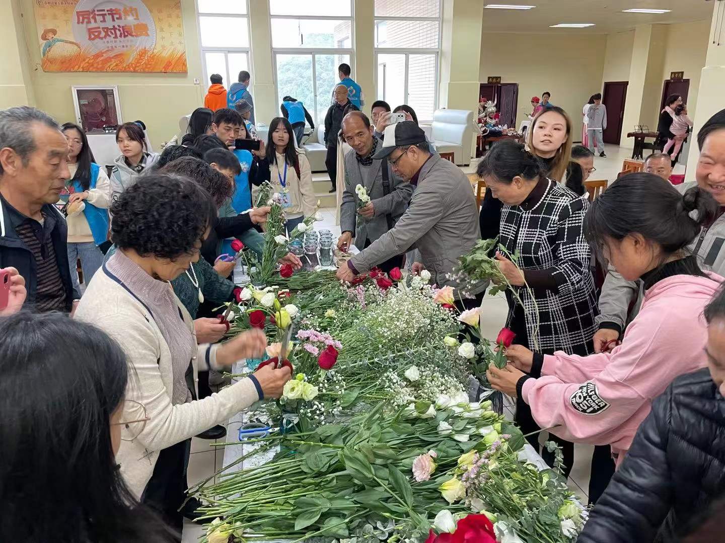 在贵才密码学校社会工作服务中心、社会工作协会志愿者的陪同下,退休老教师及教师家属进行了插花活动。