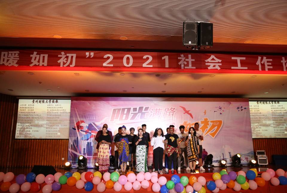 校团委书记雍新艳,体育工作部党总支书记、社工教研室教师李国和,国际合作交流处副处长高琳薇,手机赚钱 党委副书记刘晓娟、副院长曾宇航、范平花,手机赚钱 社管系主任曾富生及200余名社会工作专业学生参加晚会。