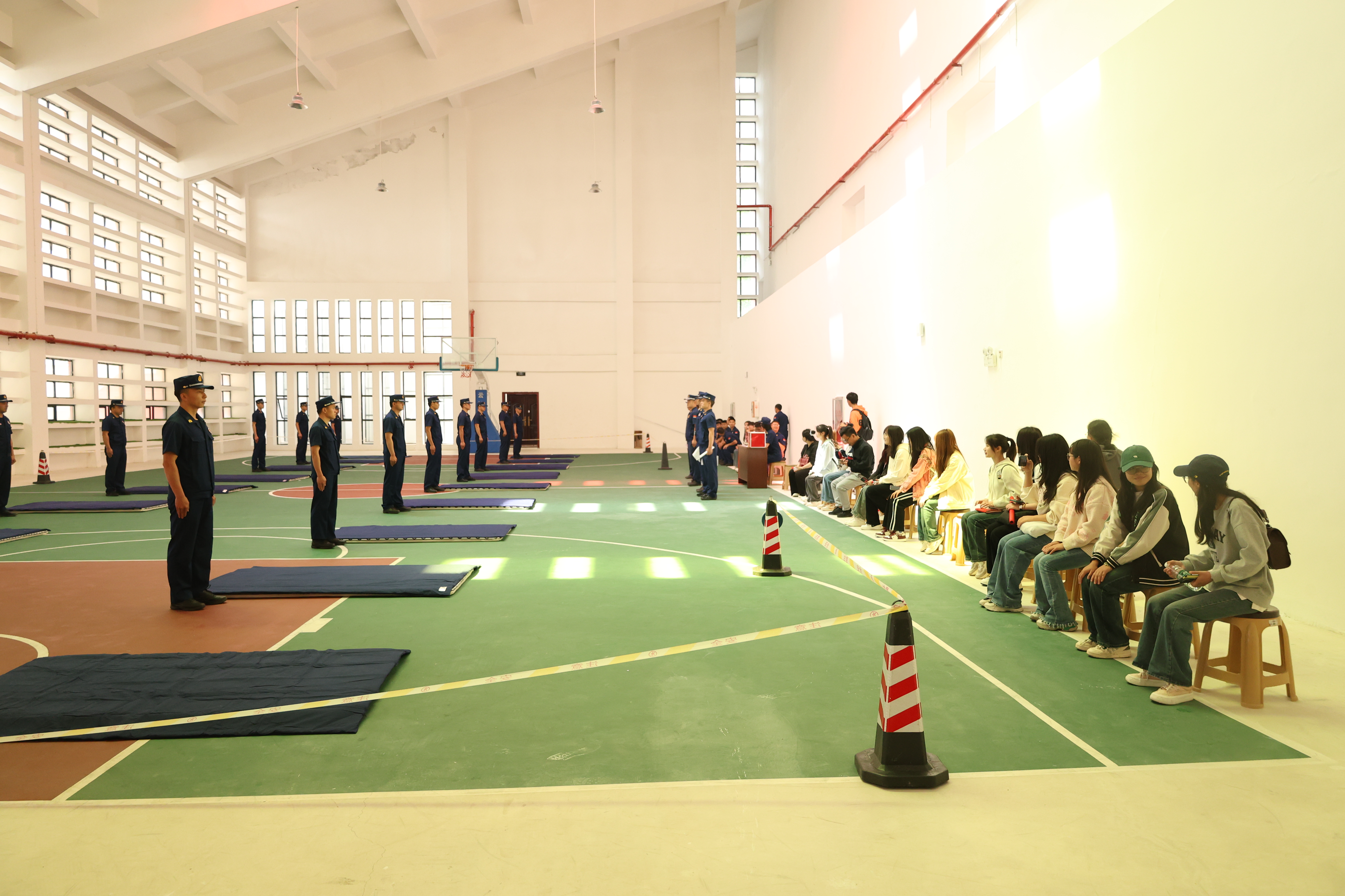 授牌仪式结束后,师生们继续参观了队史馆、119接警指挥中心,并现场观摩了支队的内务整理“叠被子”大赛,作为大众评委进行了集体打分。