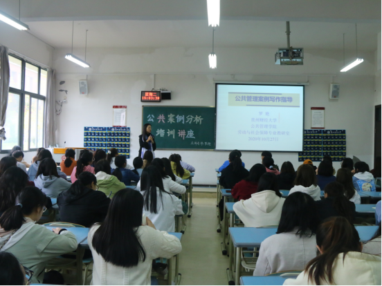 为推进公共管理相关专业案例教学工作,引导学生关注我国公共管理热点问题,培养具备良好理论素养和分析能力的应用型人才,进一步提升学生的发展力和竞争力,10月27日,贵州财经大学“儒魂商才”杯公共案例分析大赛培训讲座在博学楼1-22教室顺利举行。本次培训讲座由手机赚钱 副教授罗艳主讲,140多名同学到场参加。