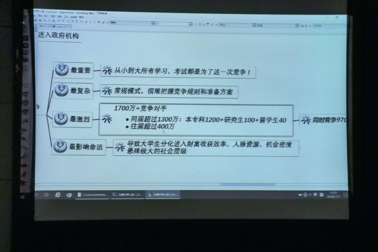 赵卓总经理结合自身的就业创业经历,围绕“职业能力分析,助力完美就业”主题从如何分析自身职业能力现状、求职考公和深造全路径发展步骤、社会选拔人才招录规则等方面进行了经验分享,鼓励同学们要尽快确定自己的大学目标,并围绕目标做好大学生涯规划,争取少走弯路,更好融入社会。