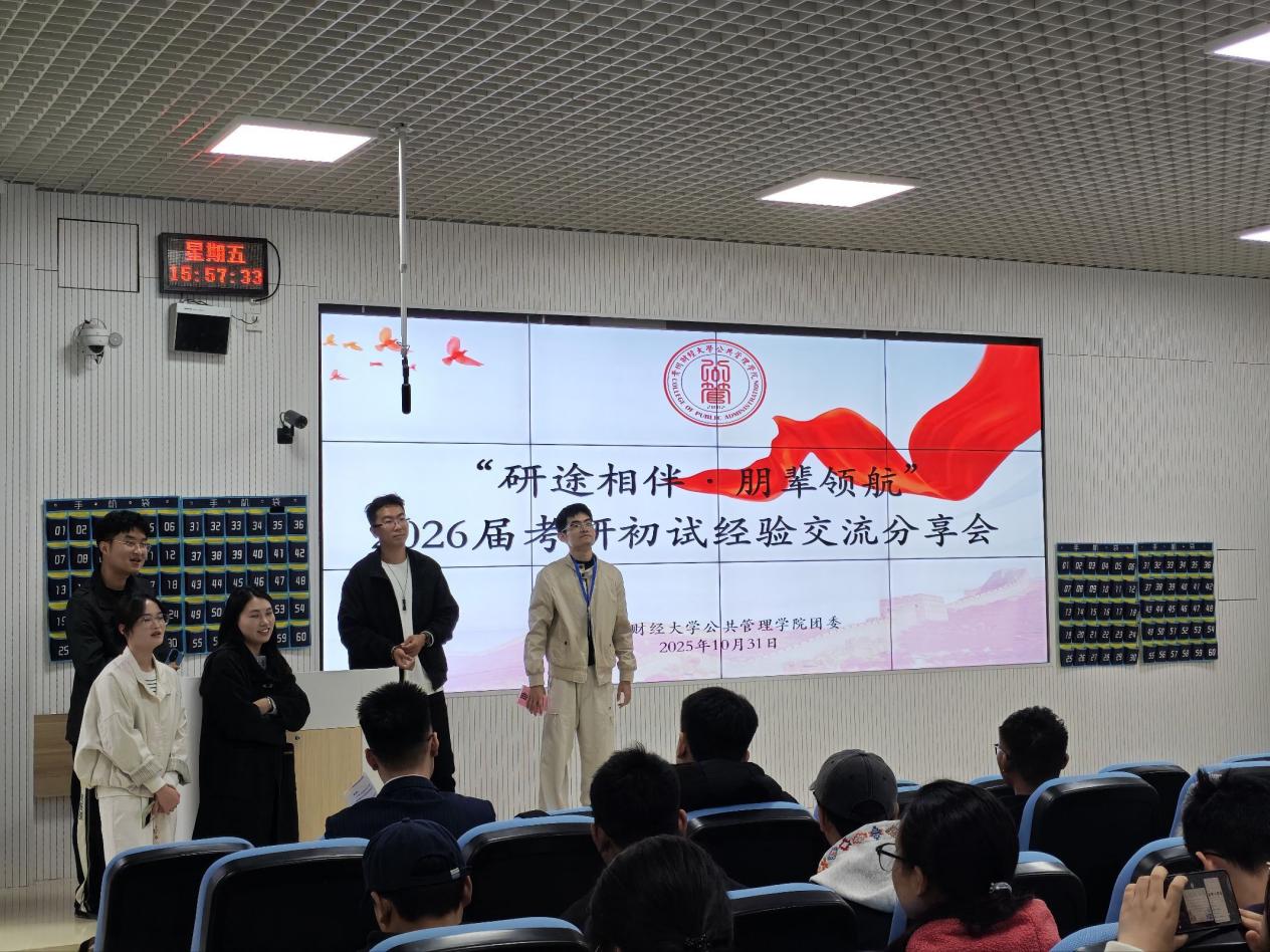 本网讯:(院团委 姜建威 报道 |摄影 杨茜、罗晶灵 )为充分发挥先进学生的榜样引领作用,扎实推进手机赚钱 学风建设,有效激发本院学子的学习热情,10月31日,手机赚钱 研究生学生会成功举办了“研途相伴·朋辈领航”2026届考研初试经验分享会。本次活动旨在帮助考研学子了解备考流程,明确复习方向,坚定考研信心。此次活动由2025级公共管理专业研究生吴禹昕和姜昊鹏共同主持,党委副书记杜吉松和团委负责人徐欣出席活动。