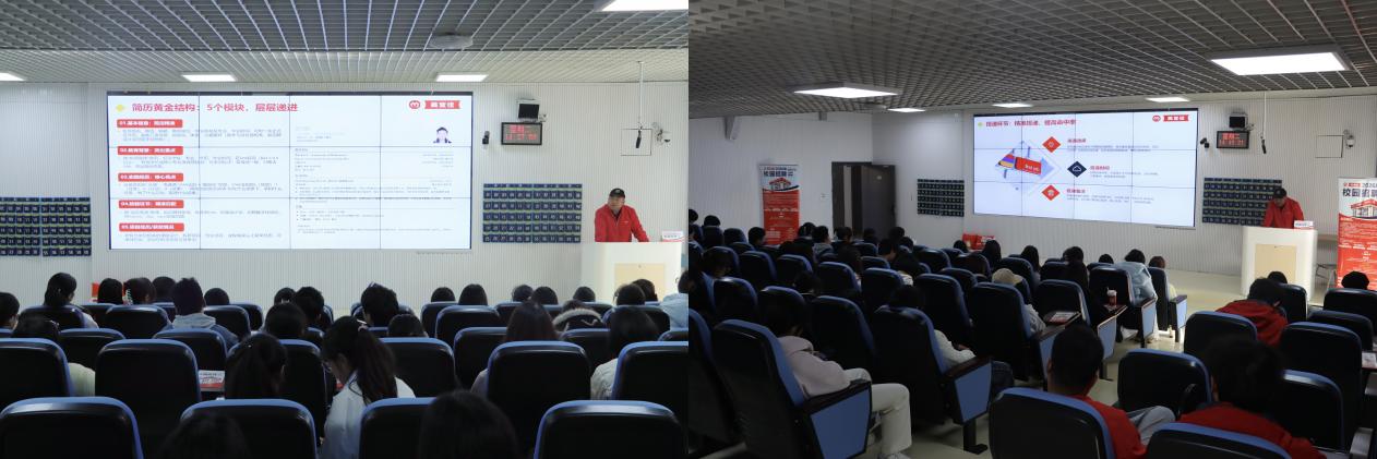 (院团委:侯梦雪 报道|摄影 刘秋吉 )为进一步加强校企合作、提升大学生求职能力,11月25日,在进学楼302举办了“简历撰写与PPT制作技巧”主题讲座,并同步开展专场招聘与现场面试。活动以岗位需求为导向,通过实用化教学,帮助学生精准对接行业标准。