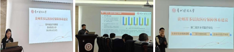 紧接着,课题组罗艳老师、潘东阳老师、杨辉老师就“贵州省多层次医疗保障体系构建研究”课题进行了详细汇报。