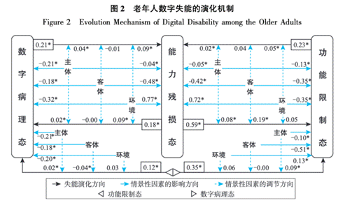 研究发现,情景性因素与失能路径的交互,决定着老年人数字失能的严重程度和演化方向,其中,主体因素的调节作用最为突出。该文弥补了现有研究对“失能”本源讨论的不足,为老年人与数字技术的脱节现象提供了新的理论框架和分析视角。